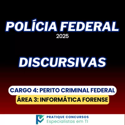 O edital do concurso da Policia Federal para o cargo depara o Cargo 4 Perito Criminal Federal Área 3: Informática Forense prevê 1 questão discursiva de Tecnologia da informação, a ser respondida em até 30 (trinta) linhas, totalizando 20 pontos. A pontuação da prova discursiva corresponde a cerca de 15% do total de pontos global. Estar bem preparado para a prova discursiva pode fazer a diferença entre ser eliminado ou ser aprovado em um dos melhores concursos do Brasil. Para te ajudar a aumentar as chances de aprovação, nós, do Pratique Concursos, especialistas em aulas e materiais de Tecnologia da Informação, preparamos um projeto 100% focado na questão discursiva do edital de TI do concurso da Policia Federal.