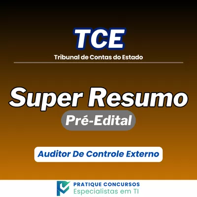 Preparamos uma série de SUPER RESUMOS em PRÉ EDITAL que abordam TODOS os tópicos de CONHECIMENTOS ESPECÍFICOS do edital passado do Concurso do TCE (Tribunal de Contas do Estado) para o cargo de Auditor De Controle Externo (Ace) na especialidade de Tecnologia da Informação.