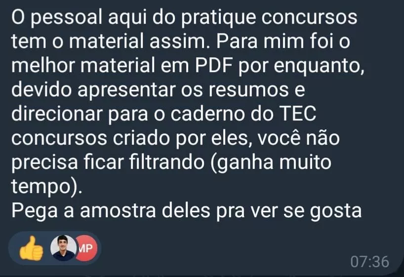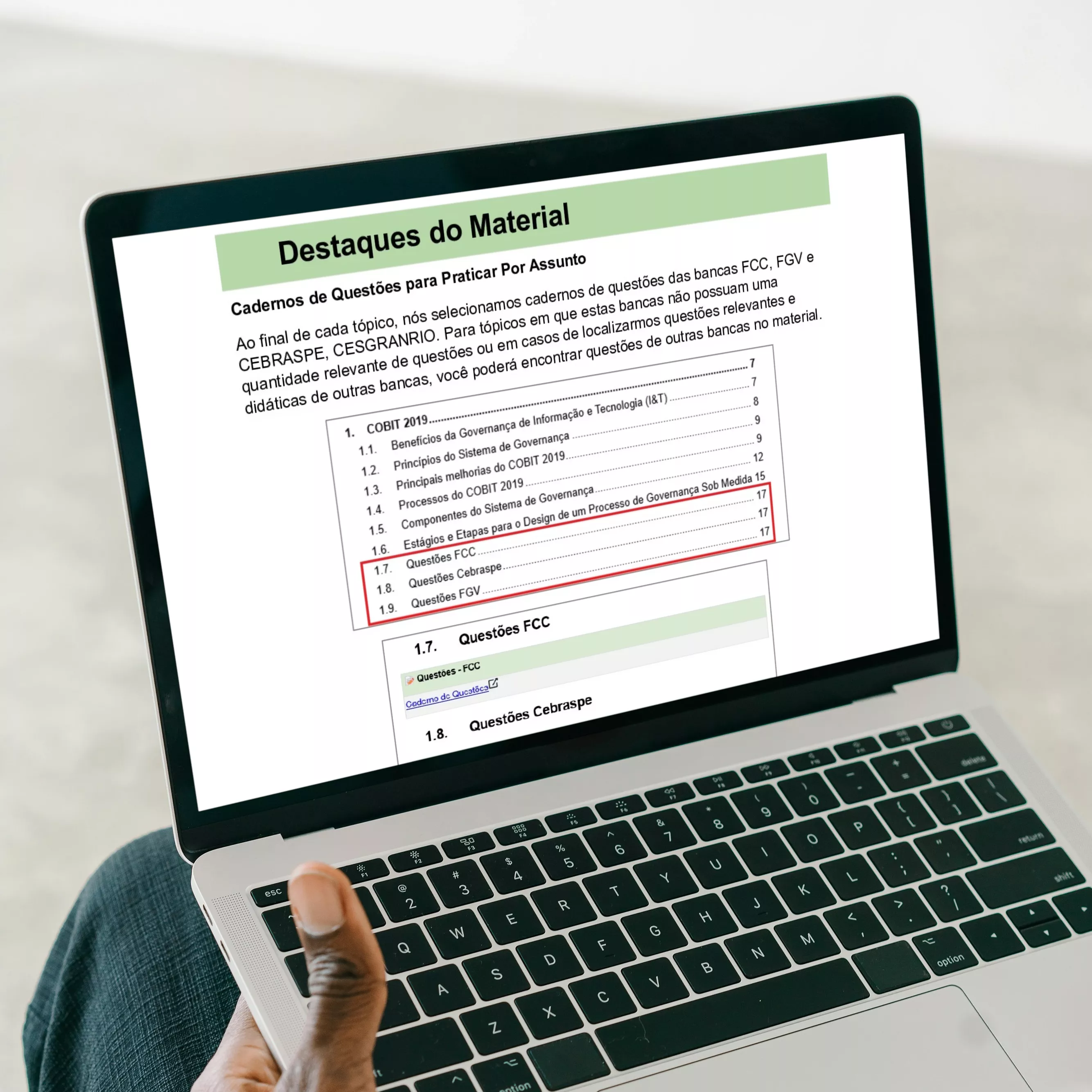 São materiais diretos ao ponto, focados no conteúdo que realmente importa para você revisar e acertar as questões de TI. Feitos por quem foi aprovado em concursos fiscais na área de TI e compostos por resumos, esquemas, tabelas, mapas mentais e link para cadernos de questão no TEC.